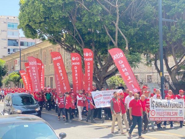 Mersin’de “AKP şaşırdı, işçiyi yola taşırdı” diyerek yürüyüş yapan işçiler; tüm belediye işçilerinin ücretlerinin derhal iyileştirilmesini, belediye şirket işçilerine yapılan ayrımcılığın son bulmasını isteyerek, “İlave tediye ve kadro hakkı derhal verilmelidir!” talebinde bulundu.