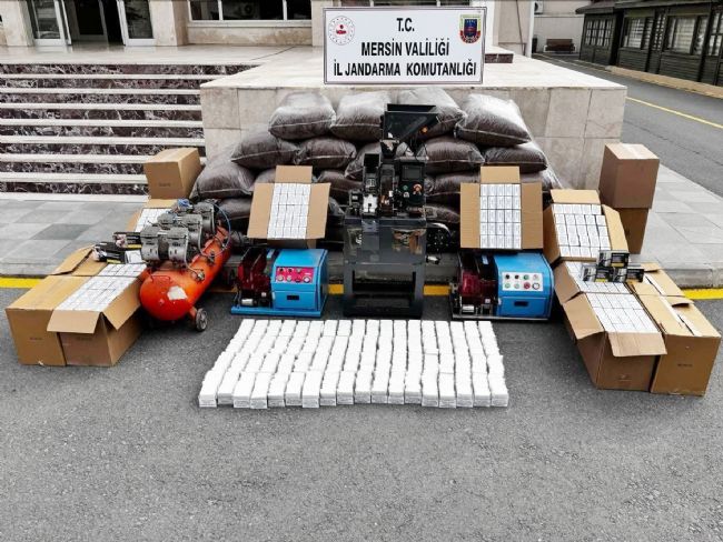 Mersin İl Jandarma Komutanlığı ekipleri, sigara kaçakçılığıyla mücadele kapsamında düzenledikleri operasyonda 2 şüpheliyi yakalarken, çok miktarda tütün ve makaron ele geçirdi.