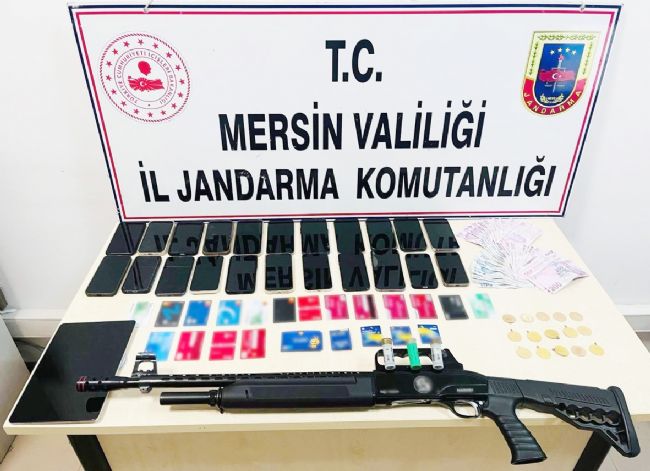 19 adet banka kartı,(1 adet av tüfeği, Toplam değeri 707 bin TL olan 15 adet tam altın ve 7 bin TL nakit paraya el kondu.