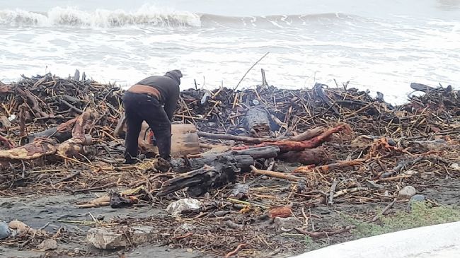 Mersin’de yaşanan sel afetinin ardından coşan derelerin aktığı Akdeniz’de kahverengiye büründü, sahiller ise odun doldu. Selin ardından sahillere gelen bazı vatandaşlar kışlık yakacak için odun toplamaya başladı. |