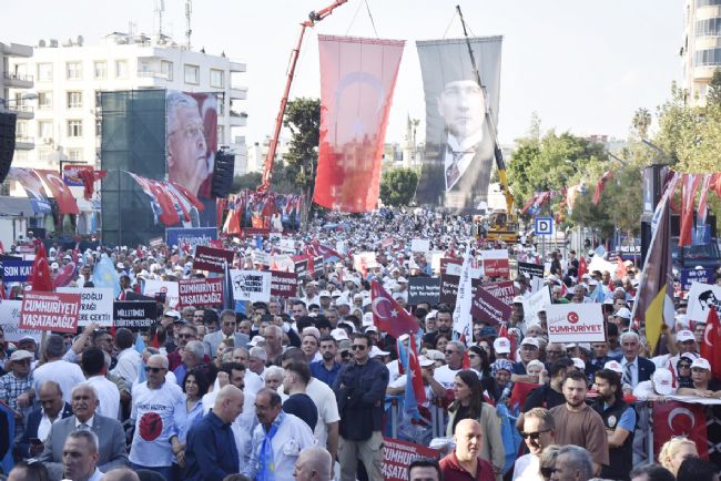Türkiye’nin 200 yılda inşa ettiği cumhuriyete dair ne varsa ortadan kaldırılmaya çalışılmaktadır. Ben milletime ayan beyan ortada olan acı gerçekleri söylemekle mükellefim. Bunu yapmaktan da ala vazgeçmeyeceğim. Türkiye’ye hanedanlık zokasını yutturmak isteyenler var. Türkiye’ye dikta gömleğini giydirmek isteyenler var. Türkiye’de demokrasiyi, sandığı tabutla gömmek isteyenler var. Türk milletini millet olmaktan çıkartıp, kabileleştirmek, tebaalaştırmak, kullaştırmak isteyenler vardır. Bir kavga edilecekse kavganın odağında bu olmalıdır. Ben size Allah’ın huzurunda yemin ediyorum, sizde şahit olun, yemin ediyorum; Bu kavgayı edeceğiz, cumhuriyeti de bu düşkünlere asla yedirtmeyeceğiz” şeklinde konuştu.