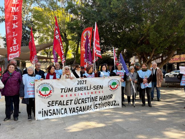 2021 Tüm Emekli Sen Mersin Şube üyeleri, “Gelirde adalet istiyoruz” sloganıyla Yoğurt Pazarında basın açıklaması yaparak bir kez daha iktidara seslendi.