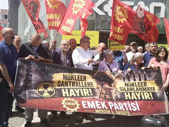 Parti binası önünde yapılan basın açıklamasında, “Nükleer santrallere hayır, nükleer silahlanmaya hayır” pankartı açarak, Mersin’de inşa edilen Akkuyu Nükleer Güç Santraline karşı tepkiler dile getirildi.