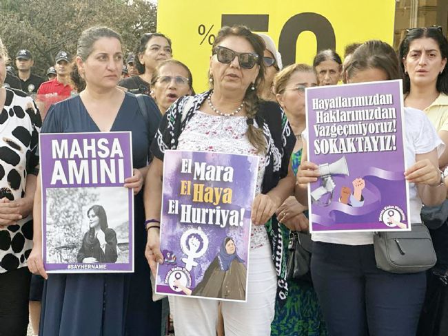 Mersin’de kadınlar Jina Amini için buluştu. Kadınlar yaptıkları açıklamada, “Kadın, yaşam, özgürlük! Kadın cinayetleri, idamlar, savaş ve kıyafet yasakları poli...