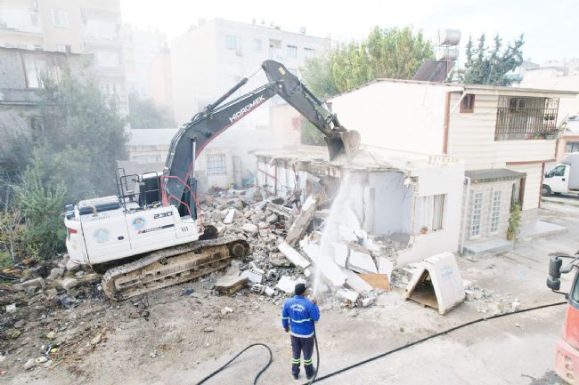 Akdeniz’de ağır hasarlı binanın kontrollü yıkımı gerçekleşti