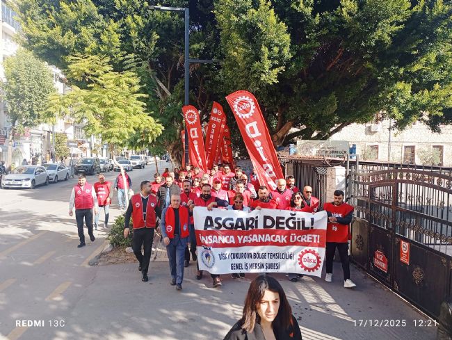 DİSK’e bağlı Genel İş Sendikası Mersin’de, “Gelirde vergide adalet, insanca yaşanacak ücret” çağrısıyla sokağa indi. Sendikadan Özgür Çocuk Parkına yürüyen emek...