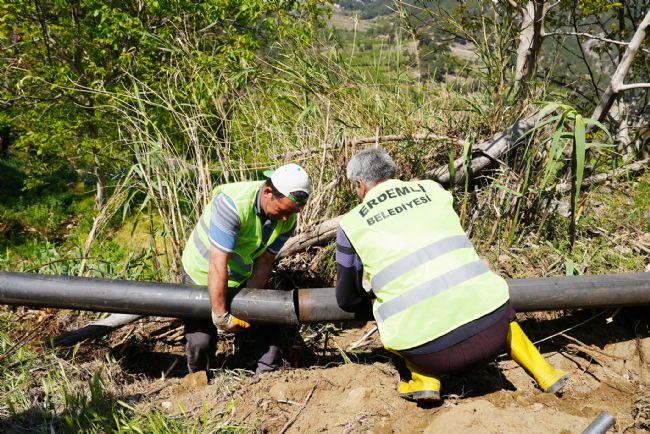 Erdemli’den üreticilere 32 bin metre sulama borusu desteği