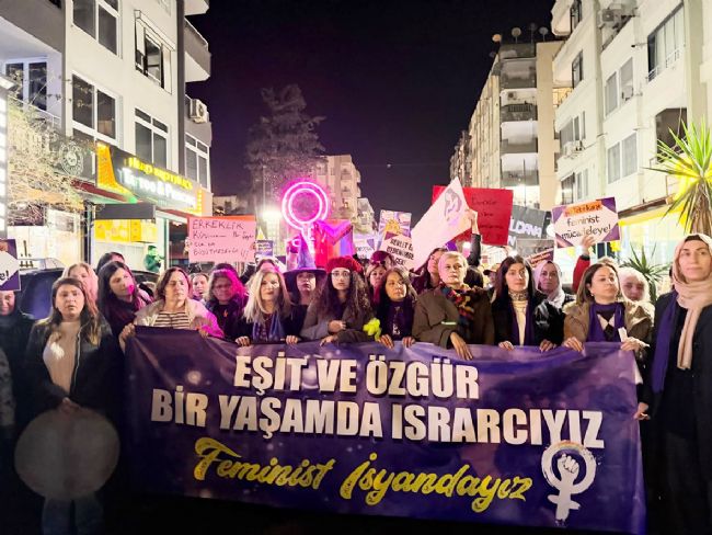 Mersin’de, 8 Mart Dünya Kadınlar Günü dolayısıyla bu yıl 11’inci Feminist Gece Yürüyüşü düzenlendi. Kadınlar, “Emeğimiz ve hayatlarımız için bir araya geldik, ‘...