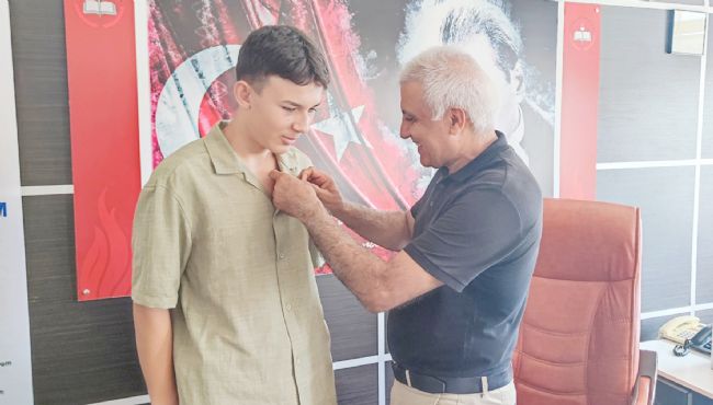 Mersin Bozyazı İlçe Millî Eğitim Müdürü Ahmet Karaltı, LGS İlçe 1.’si Ali Can Çelik’i Altın ile ödüllendirdi...