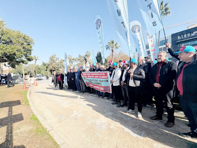 Tüm Taşıma İşçileri Sendikası Mersin Şubesi üyeleri Mersin Limanı önünde yaptıkları eylem ile limanı işleten MIP ve Özgüneş firmasını sendikalı oldukları gerekç...
