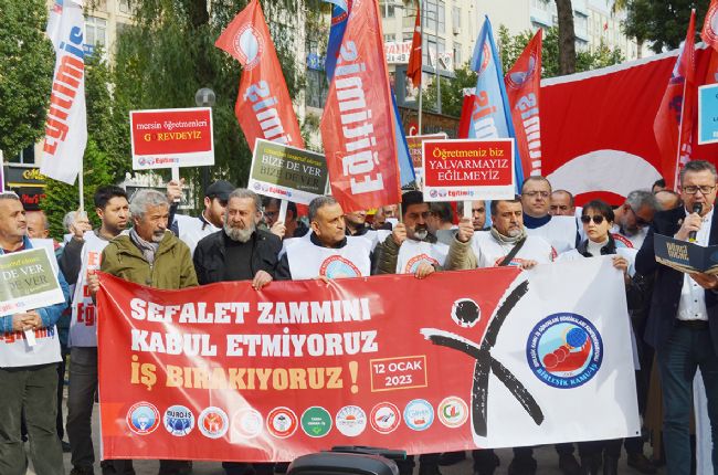 Mersin’de Birleşik Kamu İş Konfederasyonuna bağlı sendikalara üye kamu emekçileri, yüzde 30’luk maaş zammını kabul etmeyerek iş bırakma eylemine imza attı. Kamu...