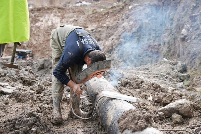 Heyelan bölgesinde hasar gören içme suyu hattı onarıldı