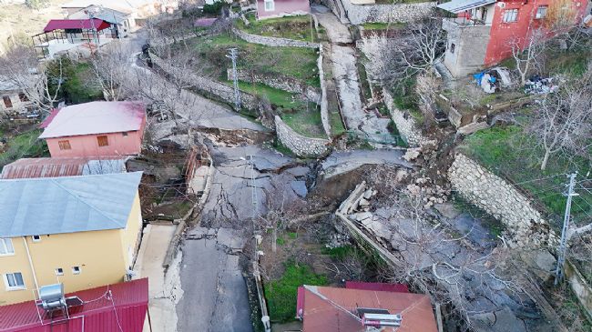 Heyelan evleri yıktı, yolu 2’ye böldü